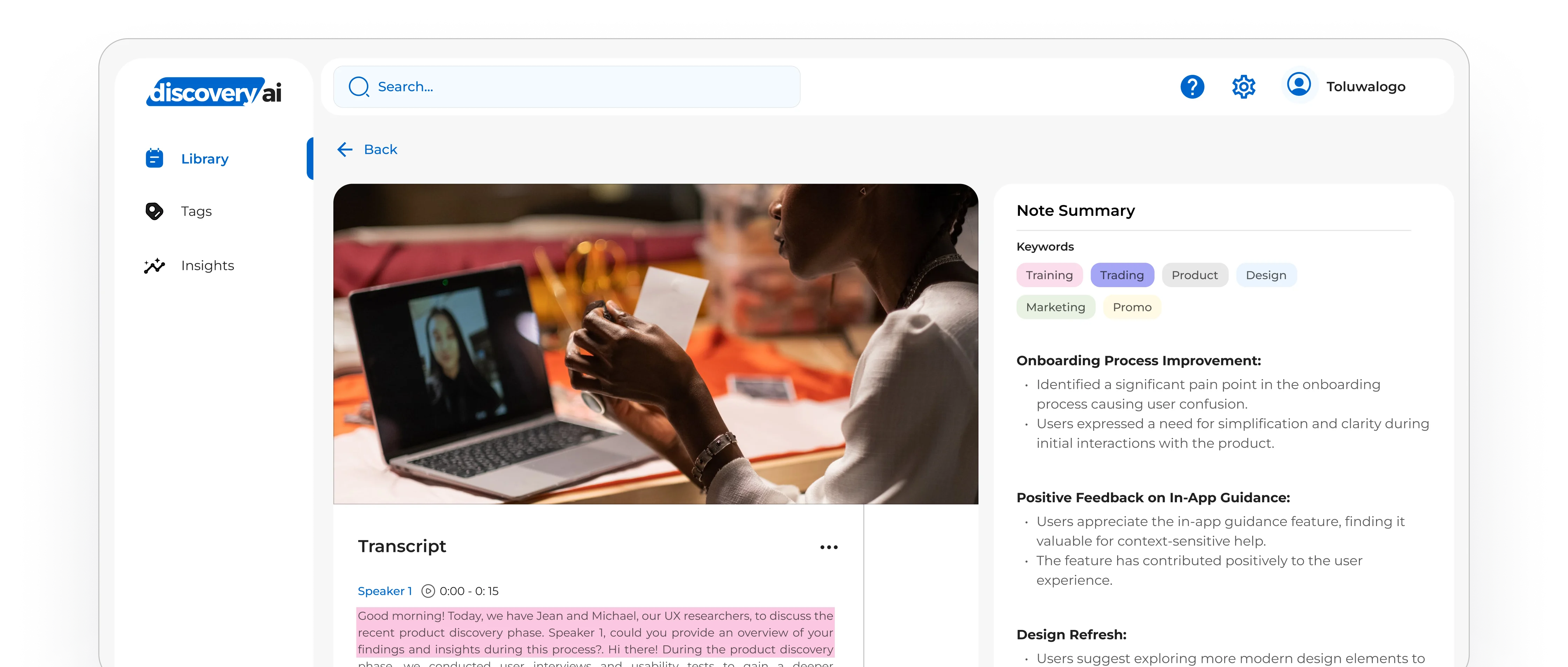Being able to upload customer interview videos, get automated summaries of our interviews, and store & retrieve customer insights easily has been invaluable.